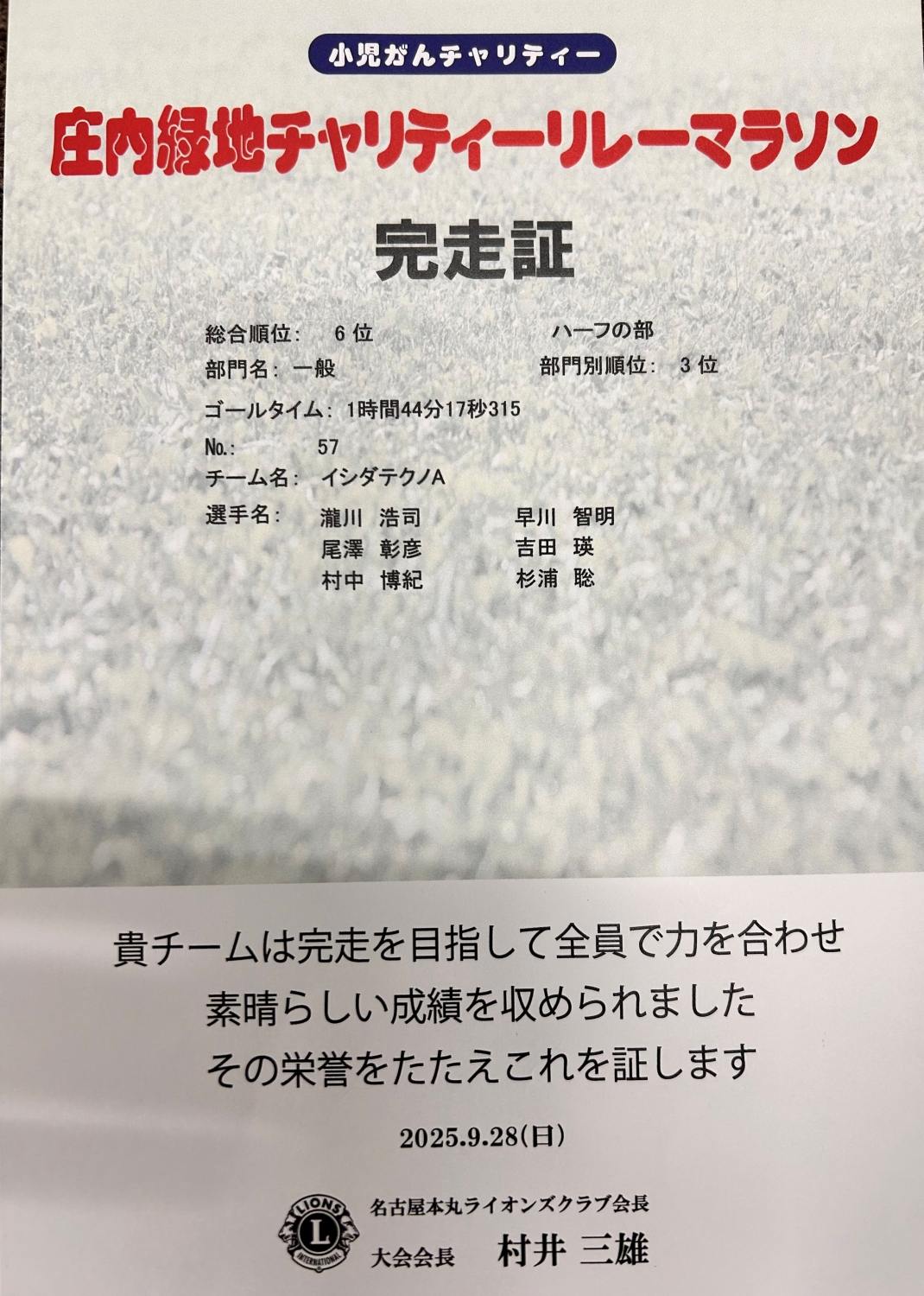 9月28日に庄内緑地公園にて開催された「庄内緑地チャリティーリレーマラソン」にイシダテクノグループで参加しました。